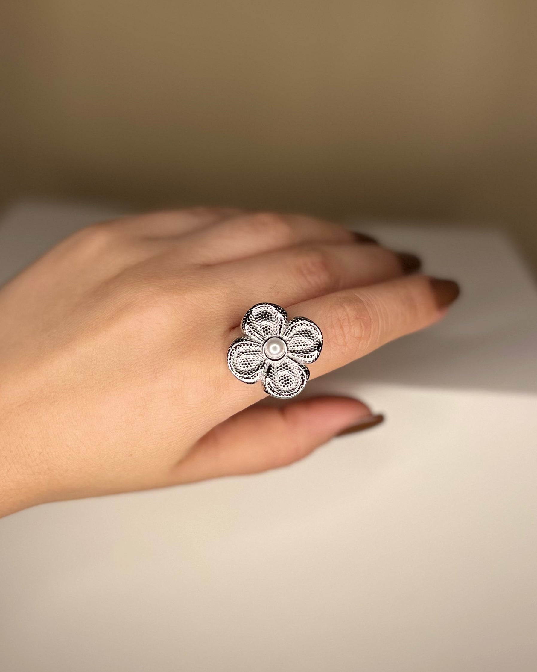 ANILLO FLOR TEXTURIZADA